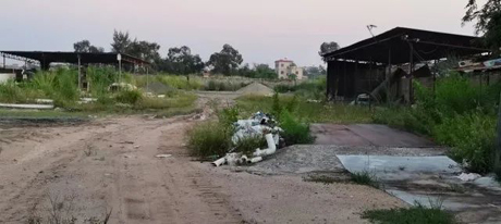 就栗彬反映的情况,笔者10月12日到黄流镇G225路边的乐东县黄流镇建筑垃圾处理厂进行实地探访。在现场笔者看到,该企业虽然处于停产状态,整个规模庞大的厂区看到堆积如山的成品和原材料都是露天堆放,就连生产加工设备也是敞开的,在厂区后面堆积的原材料紧挨着农田。在厂区围墙边竖着“海南环岛天然气管道”等字样的黄色警示桩。栗先生说距离几米的铁皮围墙里面就是他们生产产生的废物填埋坑,在填埋地点还能看到废物垃圾的痕迹。