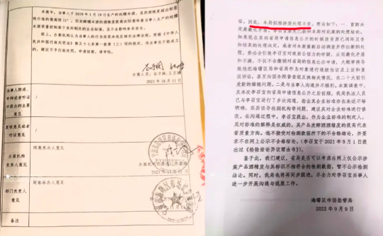 在省市监局公开的抽样单和检验原始记录等几项信息,李召宝却从中发现了违规,甚至疑似虚假编造的问题。随即,明州酒厂向宁波市监局提出宁波海关技术中心涉嫌违规检验要求立案查处的投诉报告,同时向省人民政府提起对省市监局政府信息不公开和食品安全监管行为违法的行政复议。
